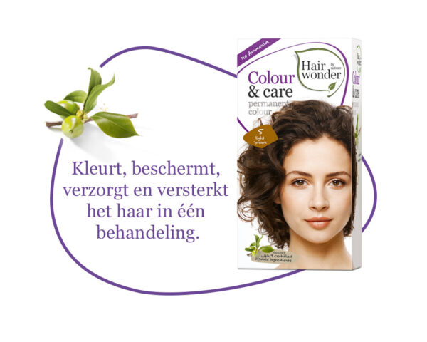 - Colour & Care - Light brown 5 Toepasbaar op middenblond tot middenbruin haar.